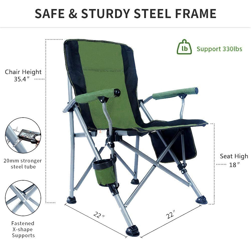 UMINEUX Portable Camping Chair, Folding Quad Outdoor, Large Heavy Duty Support 330 lbs, Blue