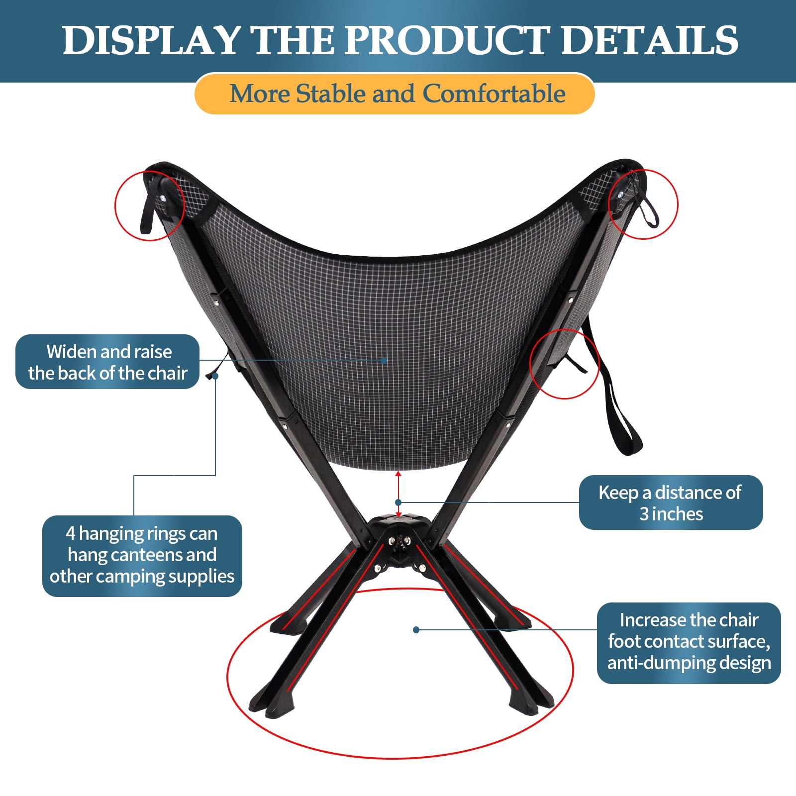 - Designed with a quick open and anti-tip mechanism, allowing you to set up the chair in just 5 seconds and stay stable in all environments.