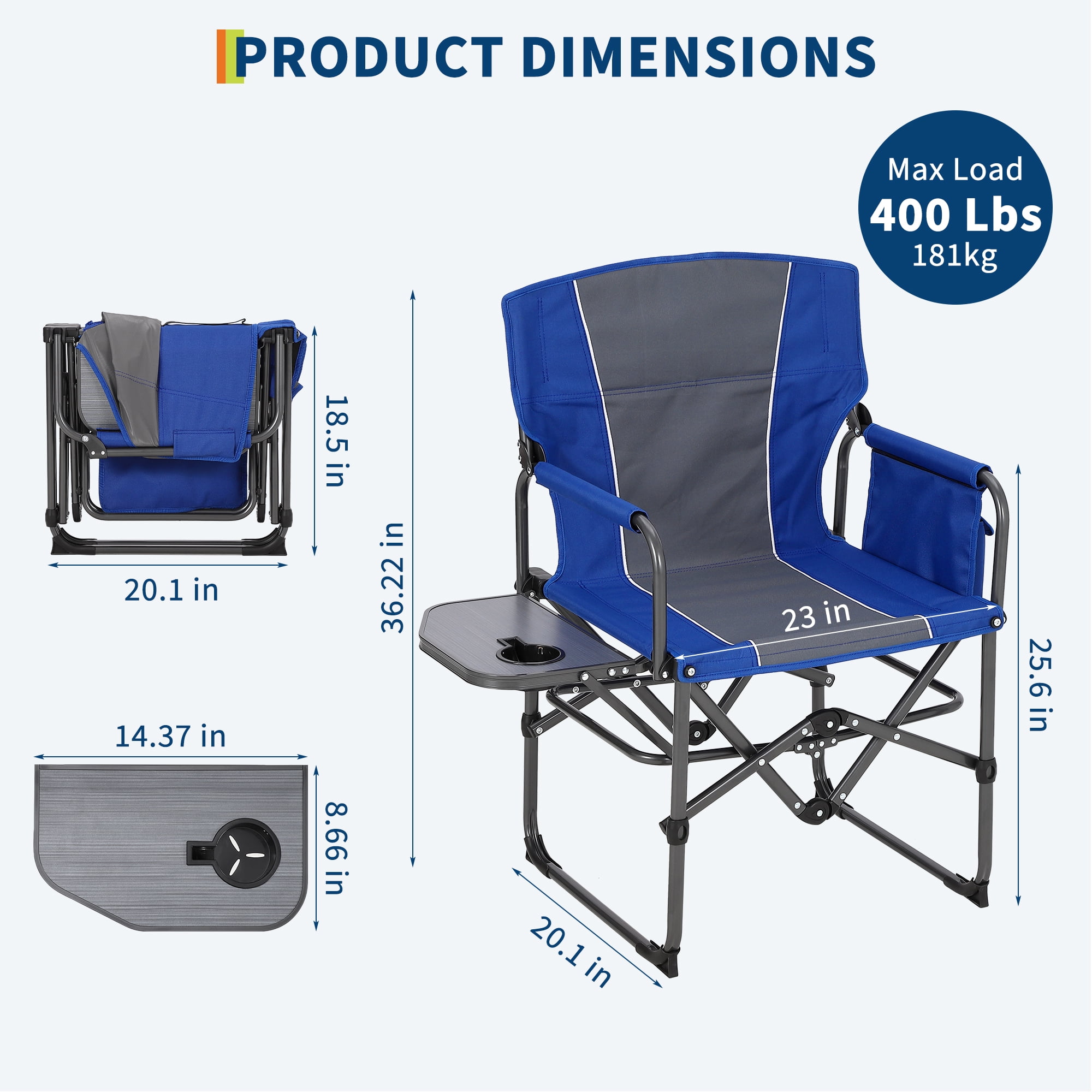 • Integrated Conveniences: Features an attached table for drinks or snacks and side pockets for storing small items.