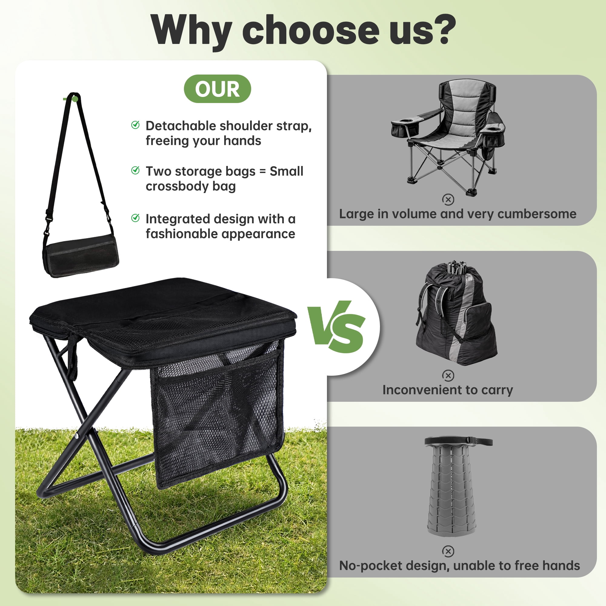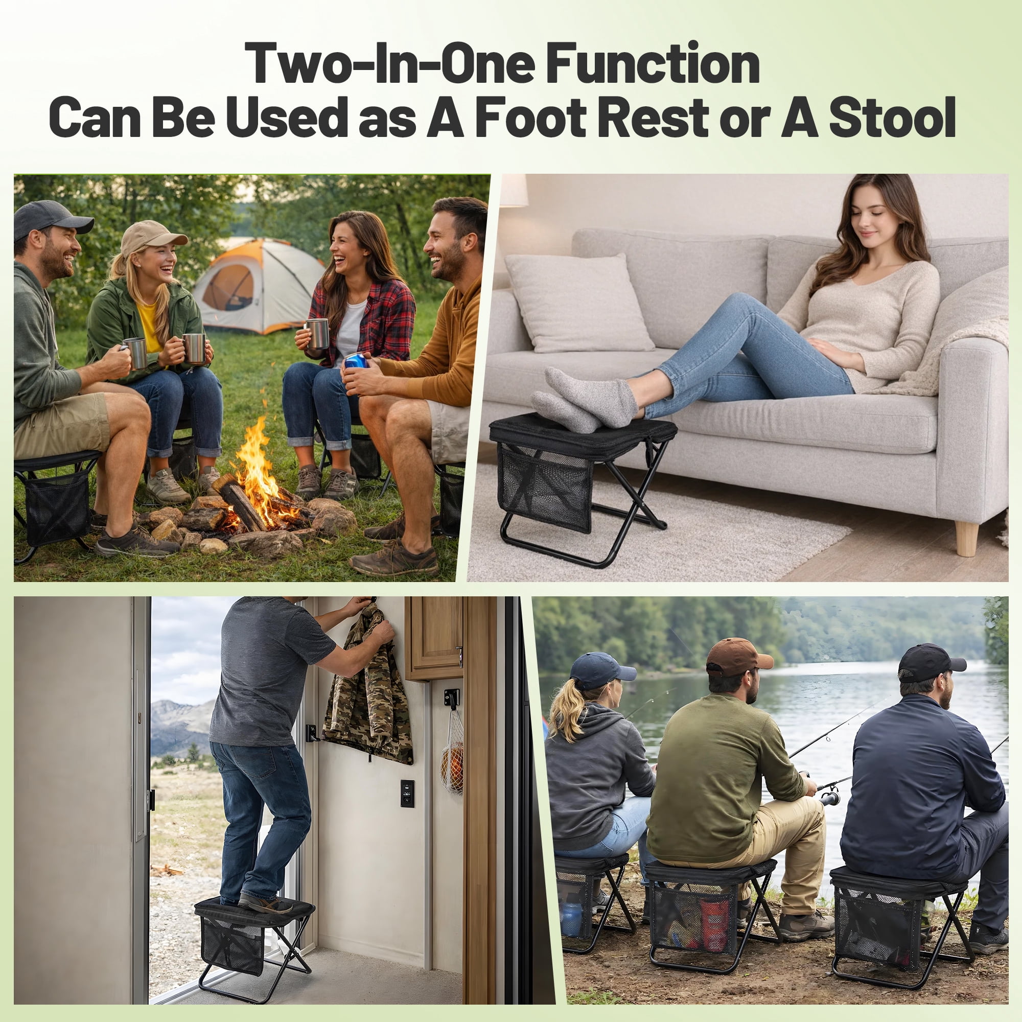 - Multi-Functional Outdoor Use: Perfect for a wide range of activities including camping, fishing, hiking, BBQs, beach days, sporting events, or even as a portable footrest. The non-slip base provides grip on grass, sand, or pavement.