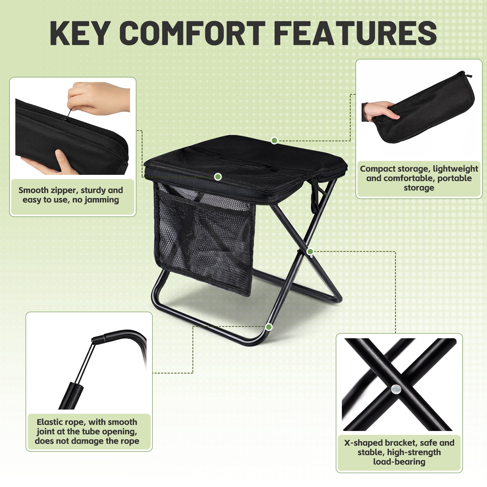 Durable & Sturdy Construction: Built with reinforced carbon steel frame and 600D oxford cloth, this stool supports up to 400 pounds, ensuring long-lasting use in various outdoor settings.
