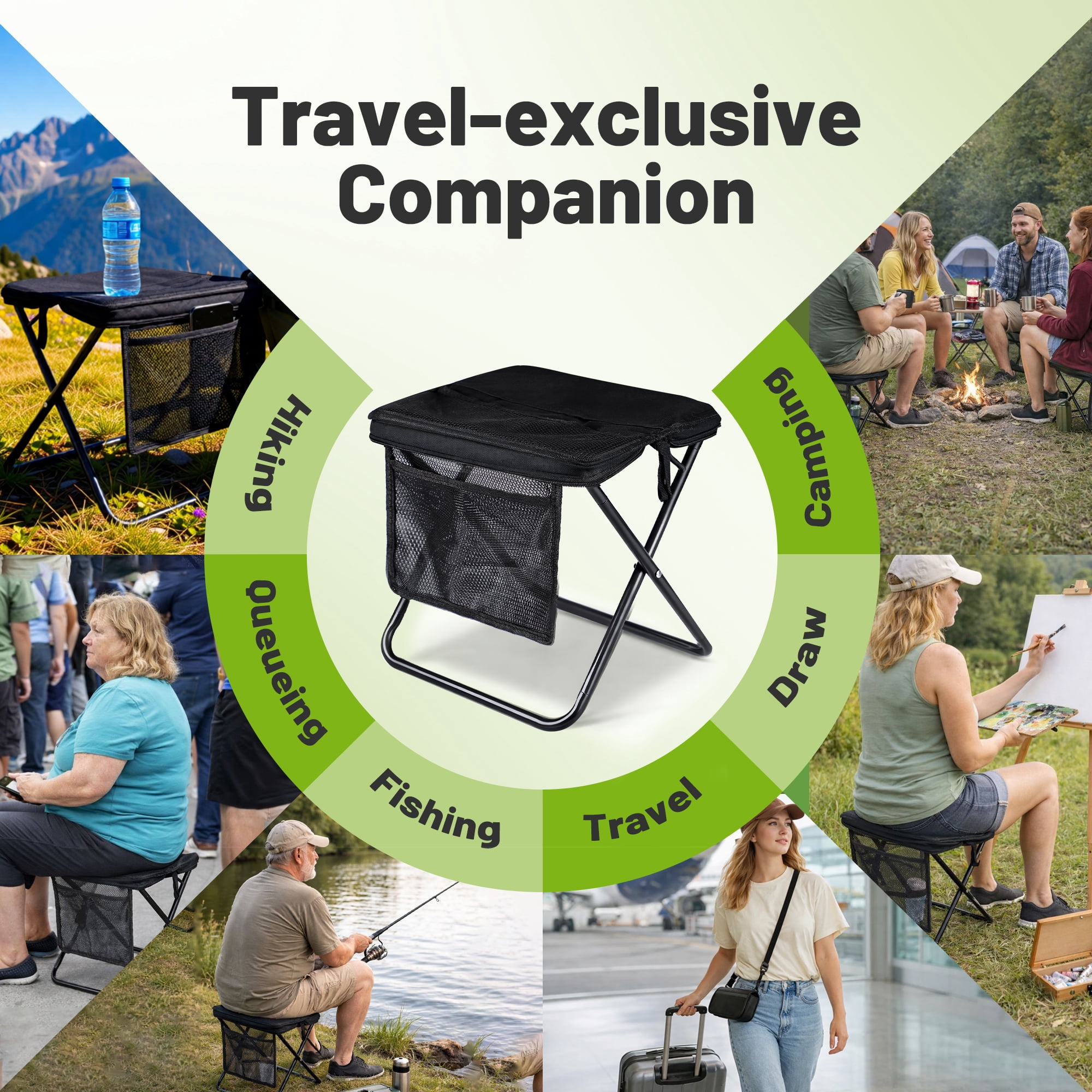 Versatile for Outdoor Activities: Ideal for camping, fishing, hiking, picnics, and queues, this lightweight stool (only 1.3 lbs) enhances comfort wherever you go, making it a must-have outdoor essential.