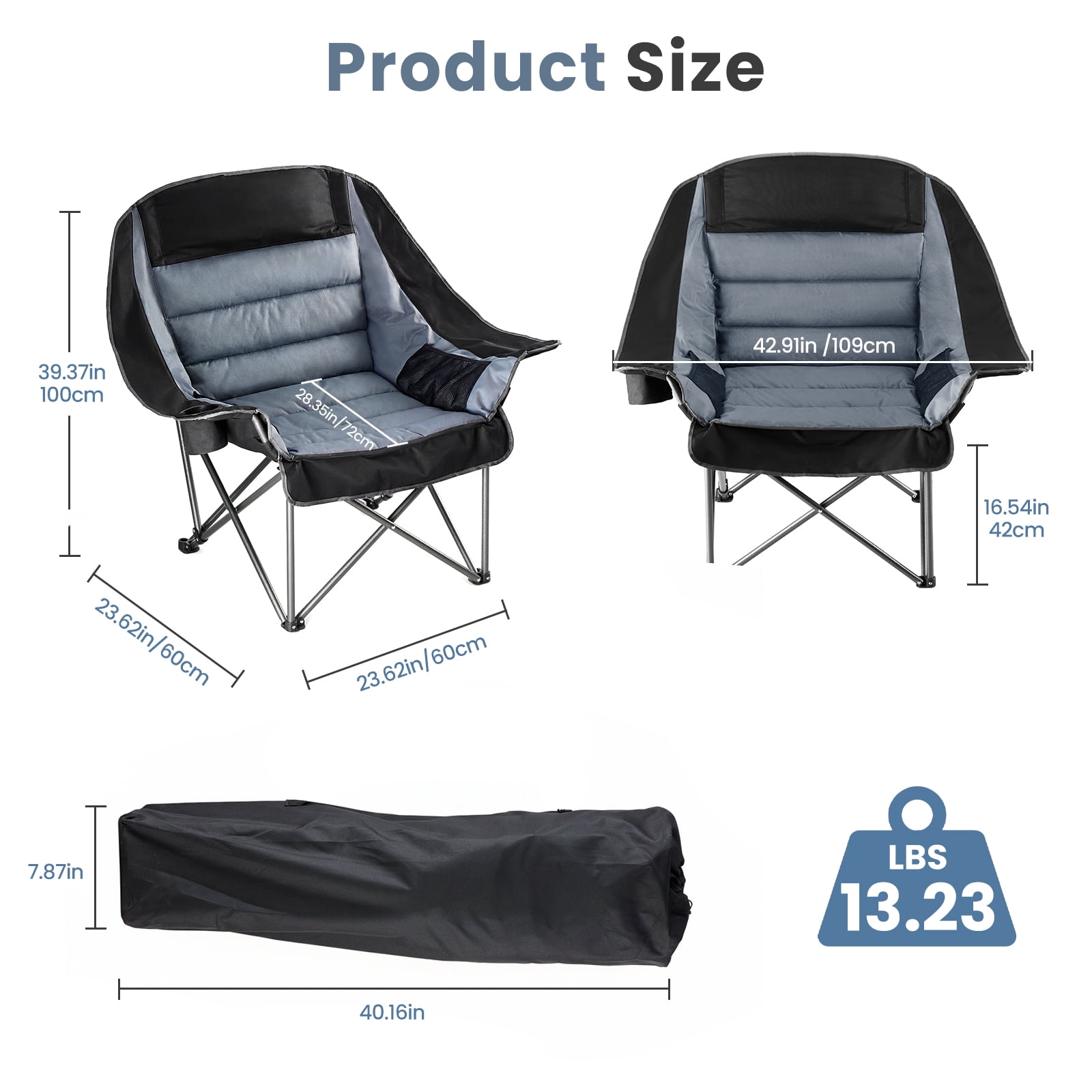 SHOUFTW Extra Large Portable Folding Camping Chair With Side Pocket, Cup Holder, And Carrying Bag, Heavy-Duty Chair For Outdoor, Fishing, Sports, And Travel Use,Black Gray
