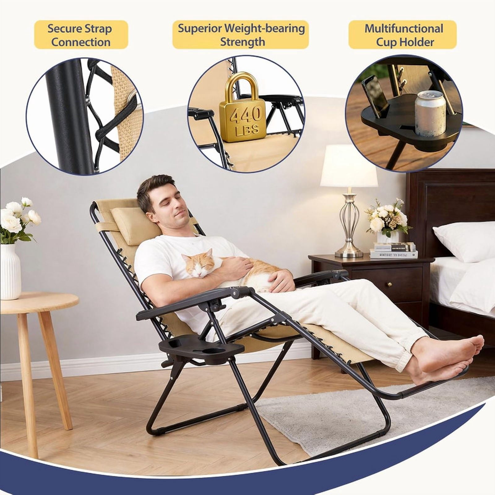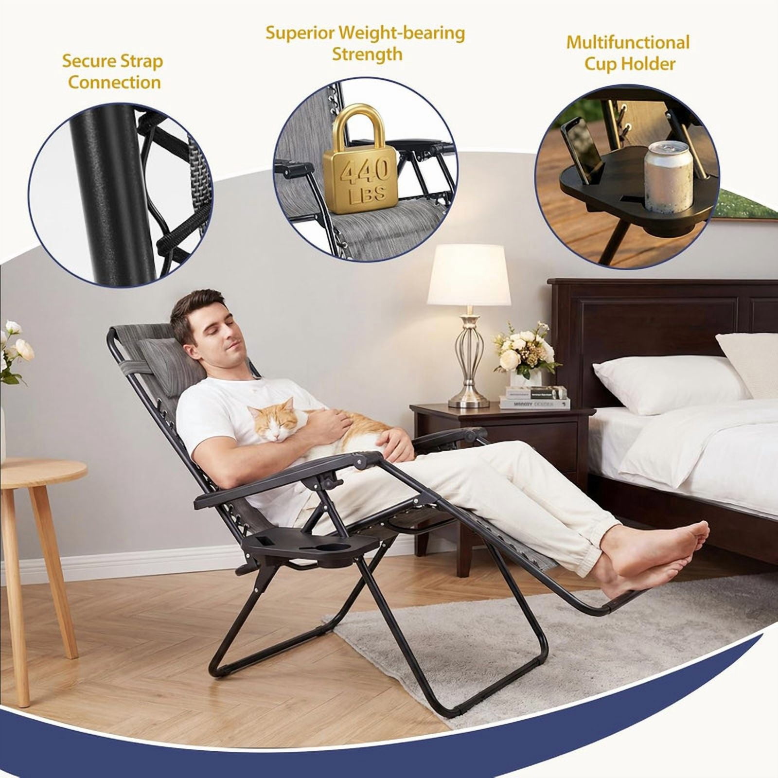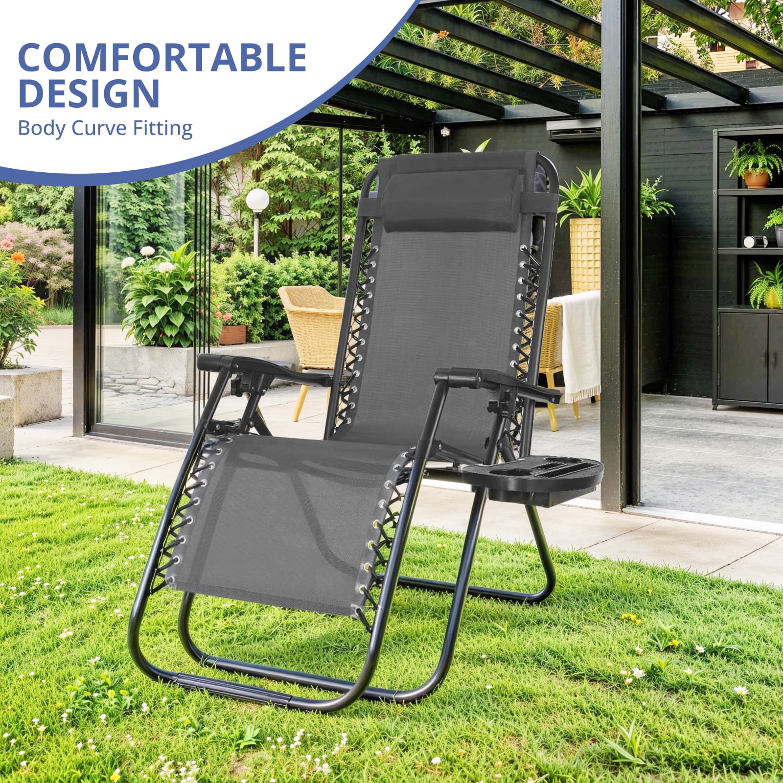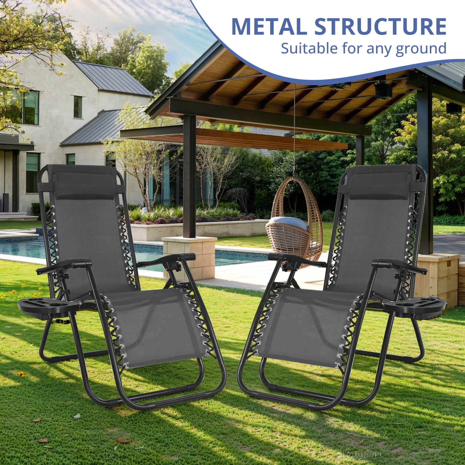 Simenmax Zero Gravity Chairs, Set of 2 Portable Recliner Beach Camping Patio Outdoor Folding Lounge Chair,Black