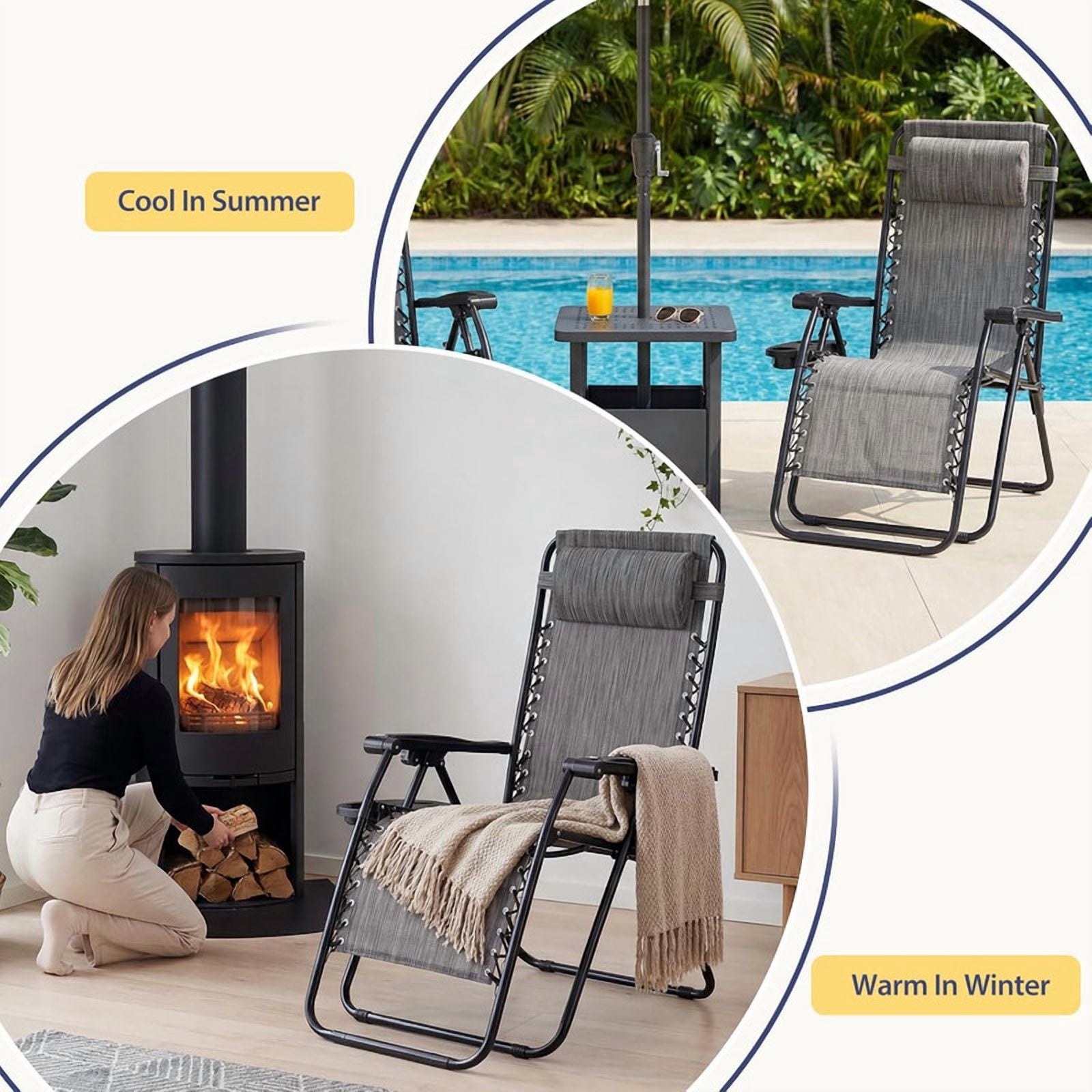 • Convenient Features: The set includes two chairs, each with a removable headrest (also lumbar support) and a detachable cup holder tray for drinks and essentials.