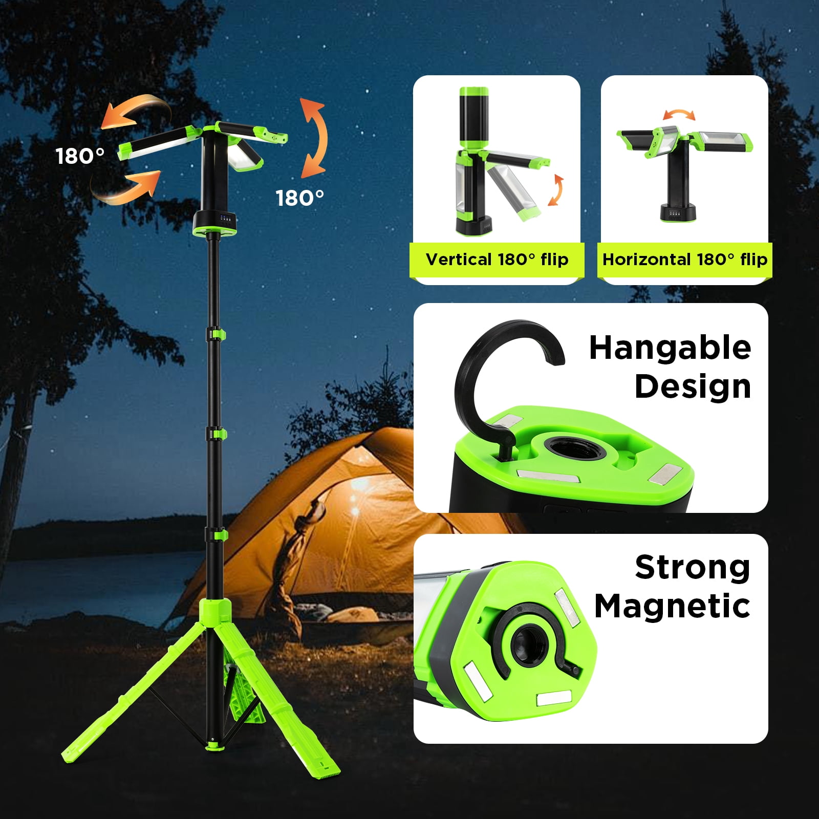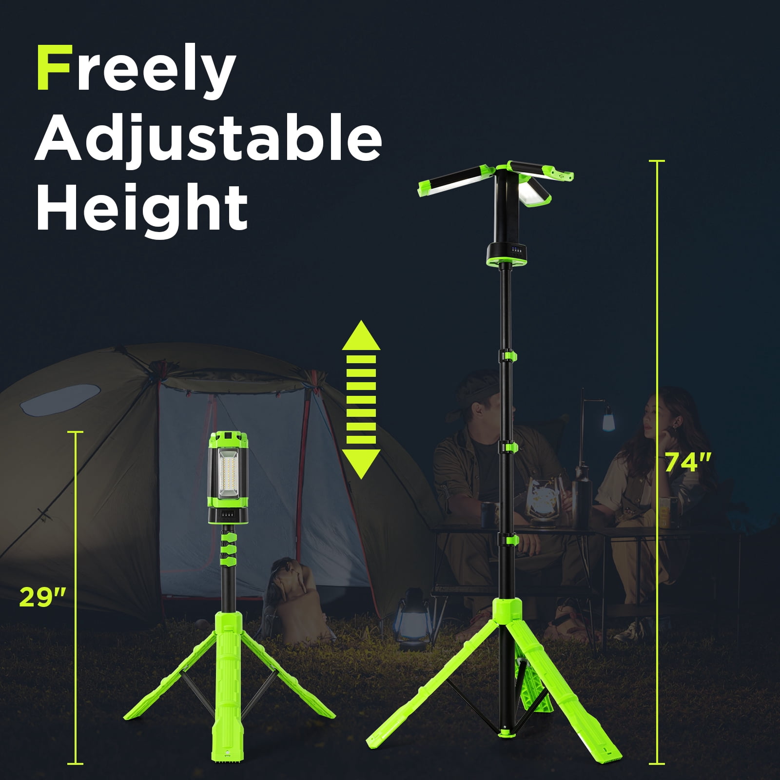 - 💡【Lightweight, Foldable & Easy to Carry】eighing just 3.7 lbs, this light is easy to carry and transport. It folds down to a compact 20.94 inches for convenient storage, while the telescoping stand extends from 29.13 to 78.34 inches, allowing you to adjust the height freely. With its cordless design, it provides flexible and reliable lighting for indoor and outdoor use.