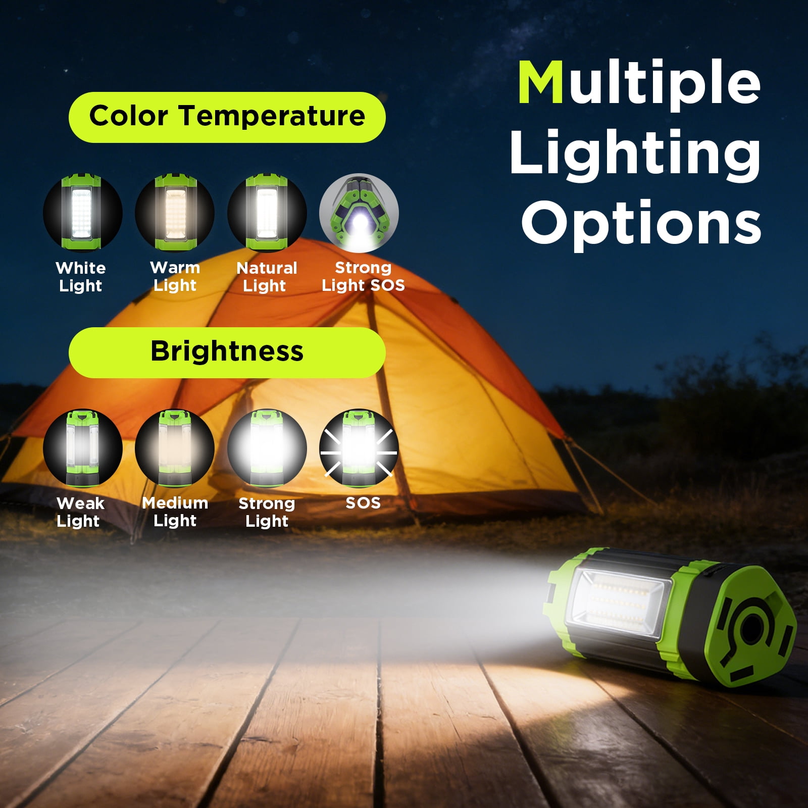 - 💡【Fully Adjustable & Multi-Purpose Lighting】This camping light features three LED heads adjustable 180° vertically and 270° horizontally, delivering wide, flexible lighting up to 1000㎡. Ideal for camping, emergencies, tents, night fishing, and cycling—one light for multiple uses.