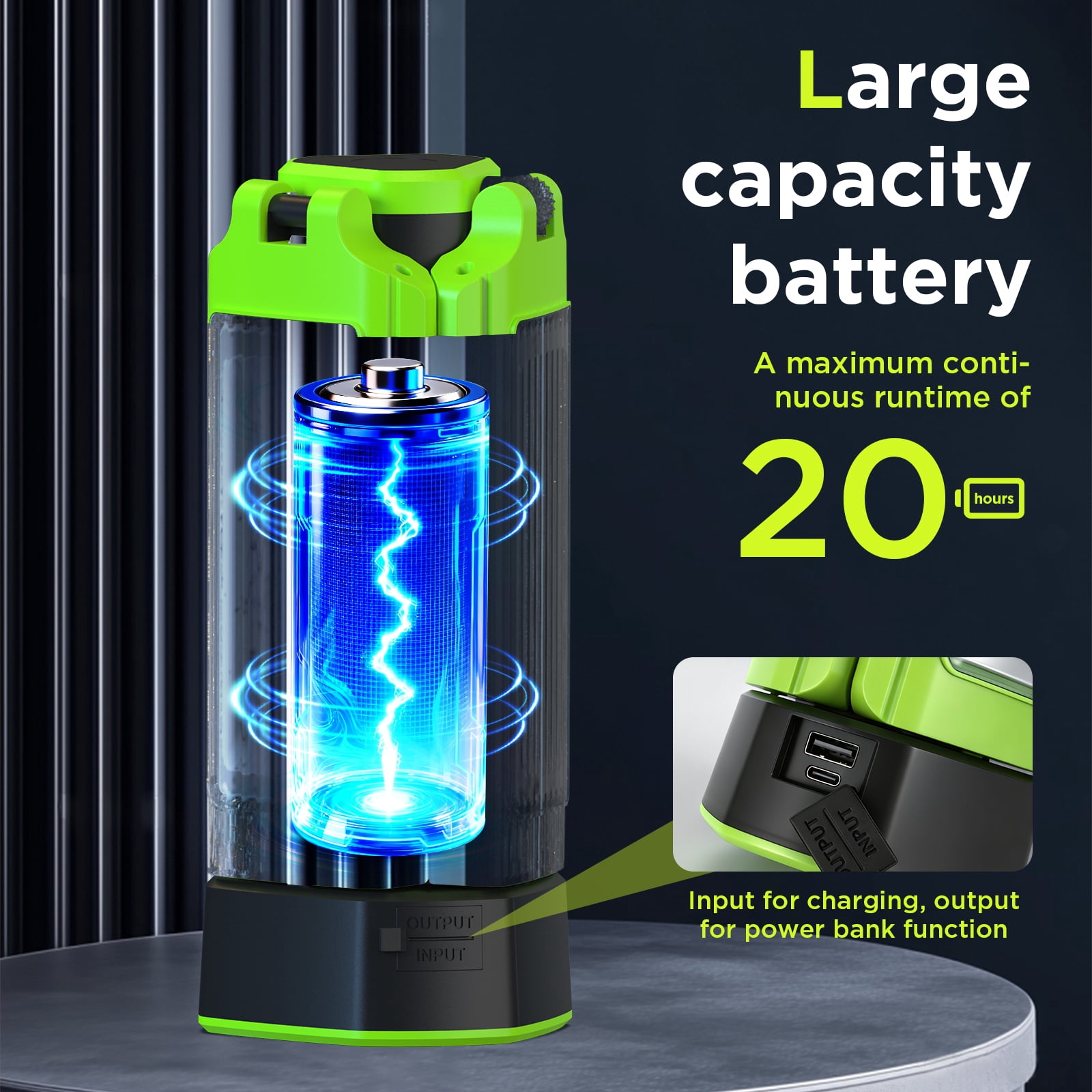 - 💡【Extended Runtime & Portable Power Bank】This camping light is powered by a high-capacity 12000mAh rechargeable battery, providing up to 22 hours of light on low mode. It also functions as a power bank with USB-C and Type-C ports for charging devices. Charging indicators show battery status, and a full charge takes about 7–8 hours. Fully charge before first use for best performance.