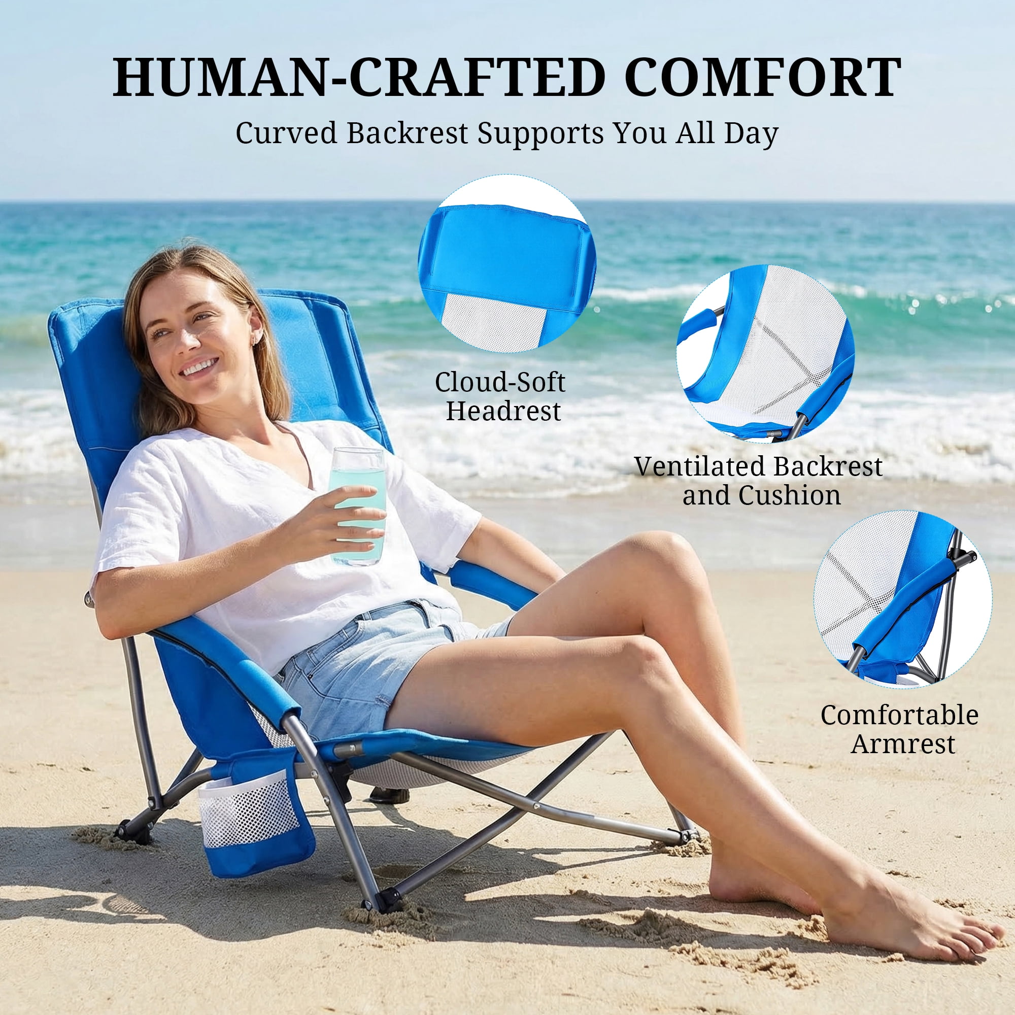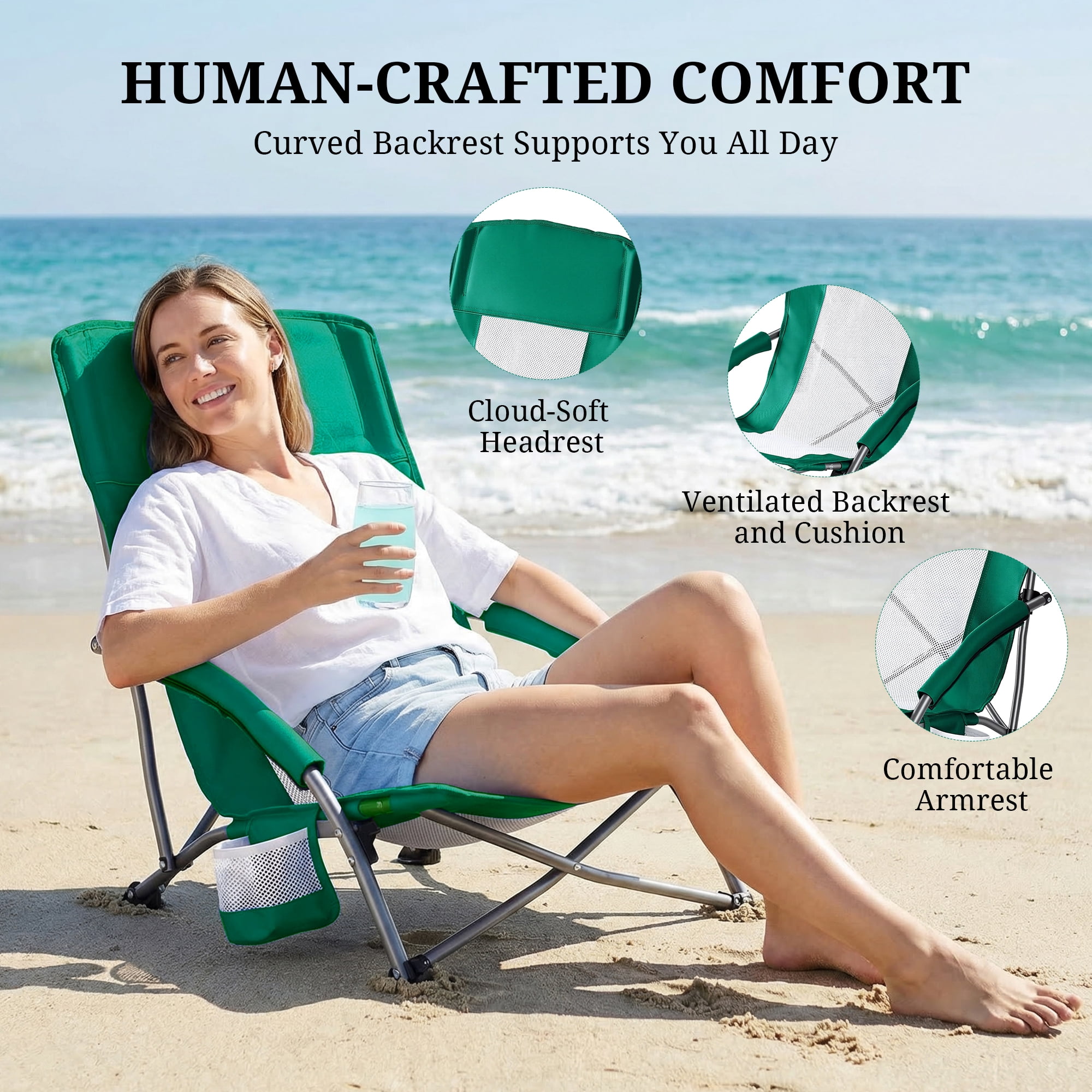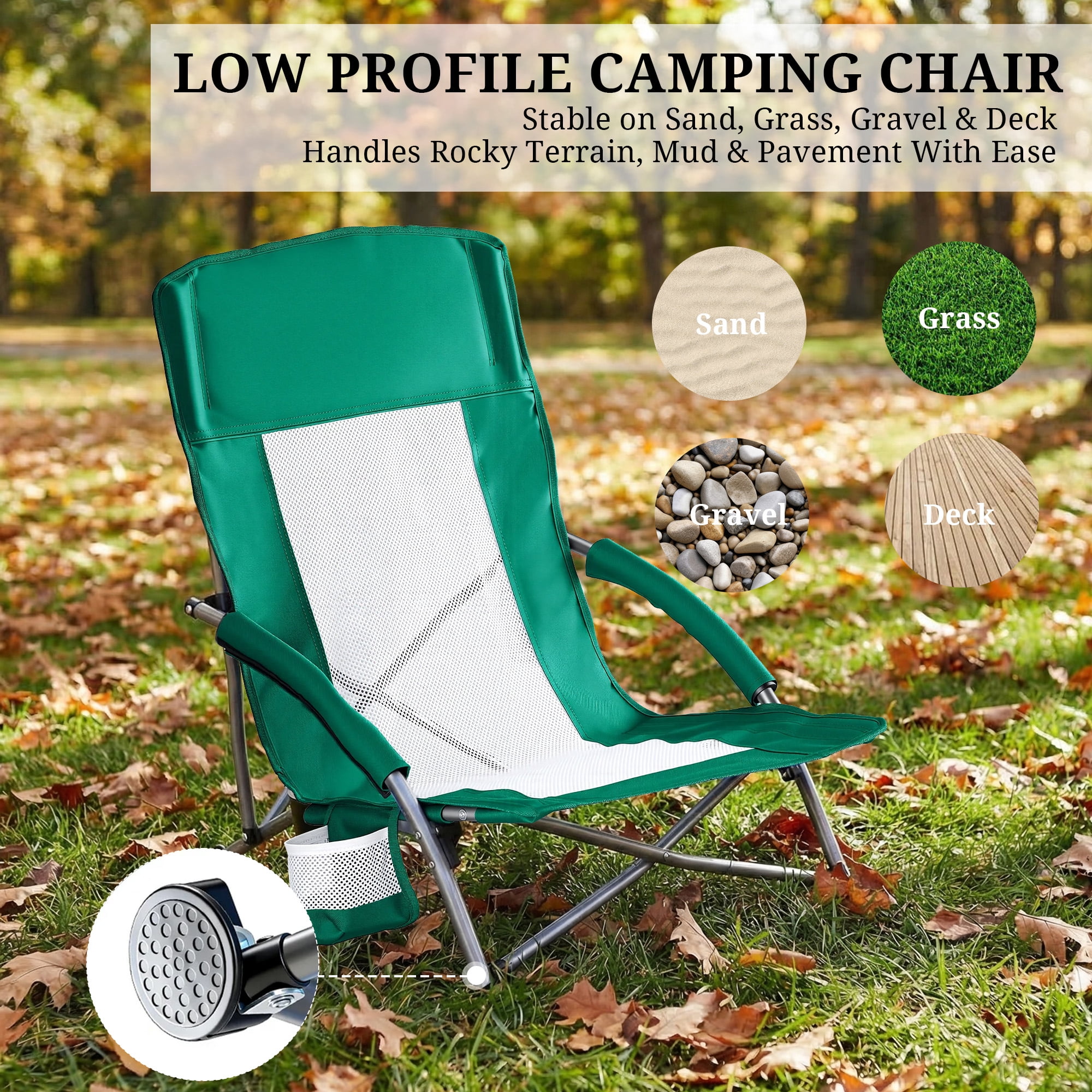 - 【Comfort in Any Weather, Stability on Any Terrain】 Padded armrests add extra coziness, while the breathable mesh keeps you cool or warm as needed. The reinforced legs grip firmly on grass, sand, or soil for a wobble-free setup.