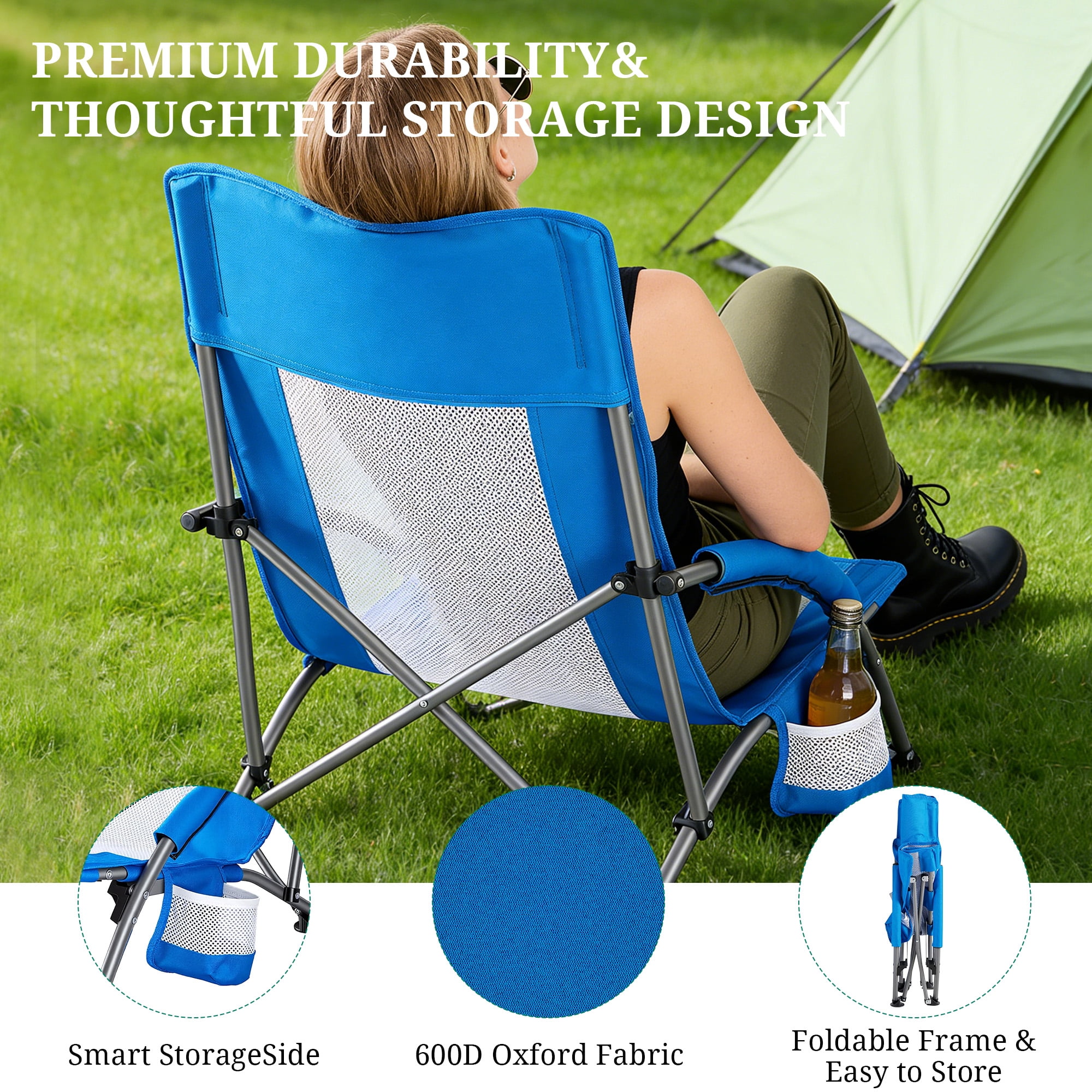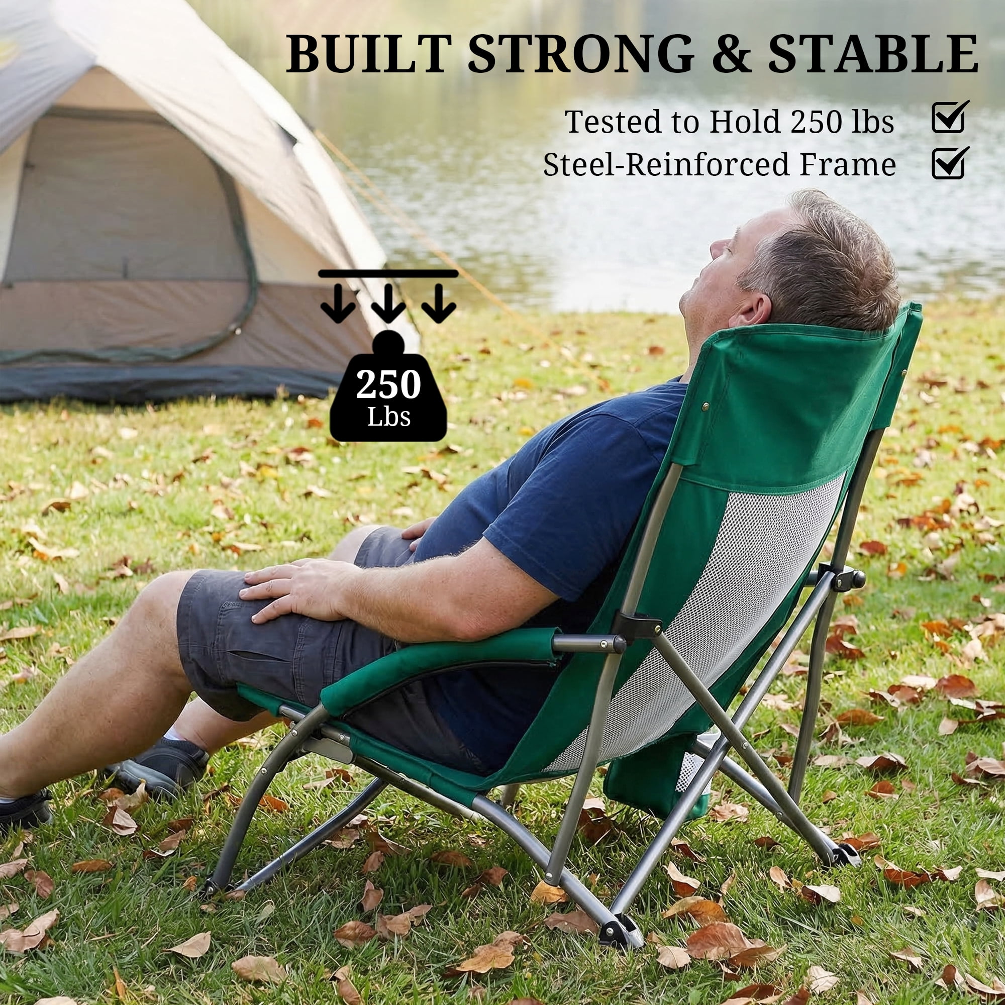 - 【Heavy-Duty Construction That Lasts】 Built with a corrosion-resistant alloy steel frame, reinforced 600D Oxford fabric, and breathable mesh panels for long-term durability. Rated to hold 252 lbs, it offers rock-solid support for any outdoor activity.